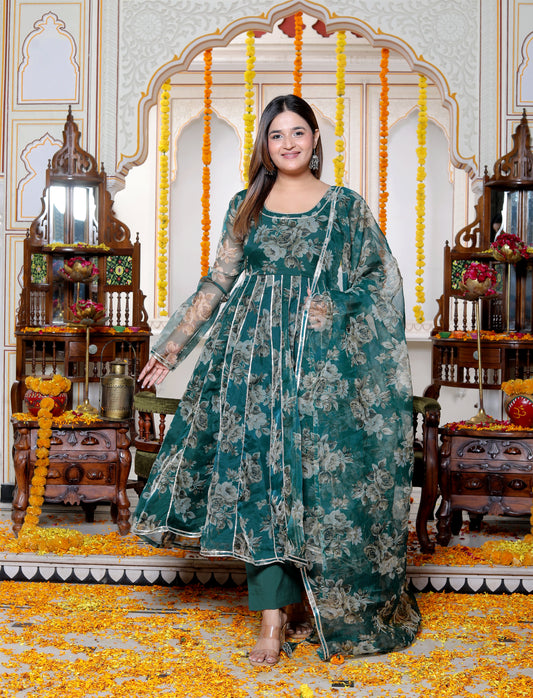 MINAKARI GREEN ORGANZA ANARKALI ...