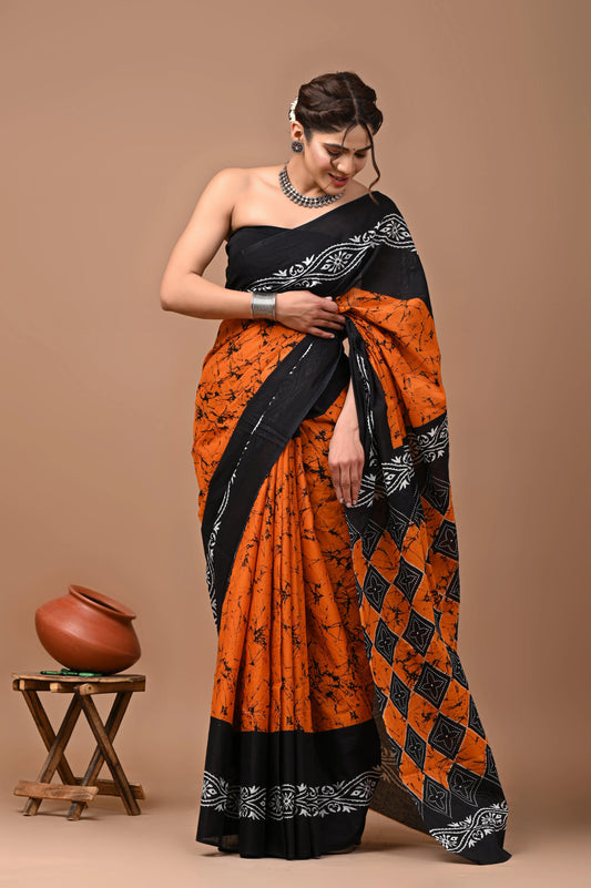 Block Printed Cotton linen Saree...