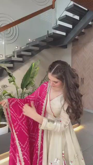 Purely Handmade Anarkali Plazzo Set & Bandhani Dupatta For A Royal Festive Look