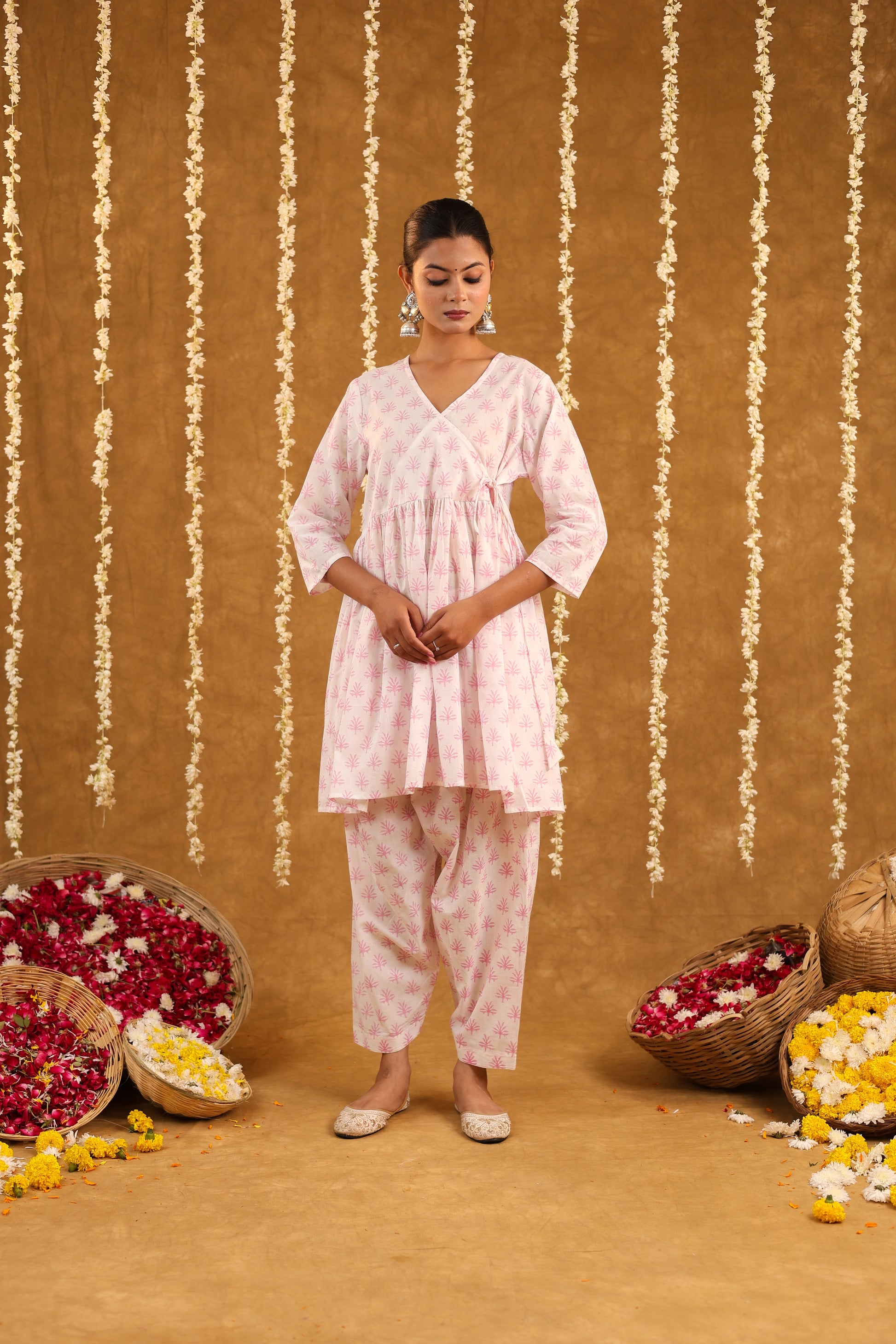 Soft, subtle, and effortlessly elegant — the Blush Bloom Coord Set is crafted from pure cotton and block printed in delicate pink floral motifs. Its relaxed silhouette, V-neck, and soft gathers make it the perfect outfit for festive mornings, casual celebrations, or relaxed summer gatherings. Pair it with statement jhumkas for an elevated ethnic look.