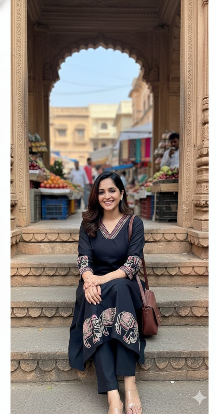"Elevate your style with this stunning cotton kurta suit, featuring intricate embroidery work on the sleeves and kurti. The delicate Animal print and subtle textures add a touch of elegance to this traditional ensemble. Perfect for casual gatherings, festive occasions, or everyday wear, this kurta suit is a must-have in your wardrobe."