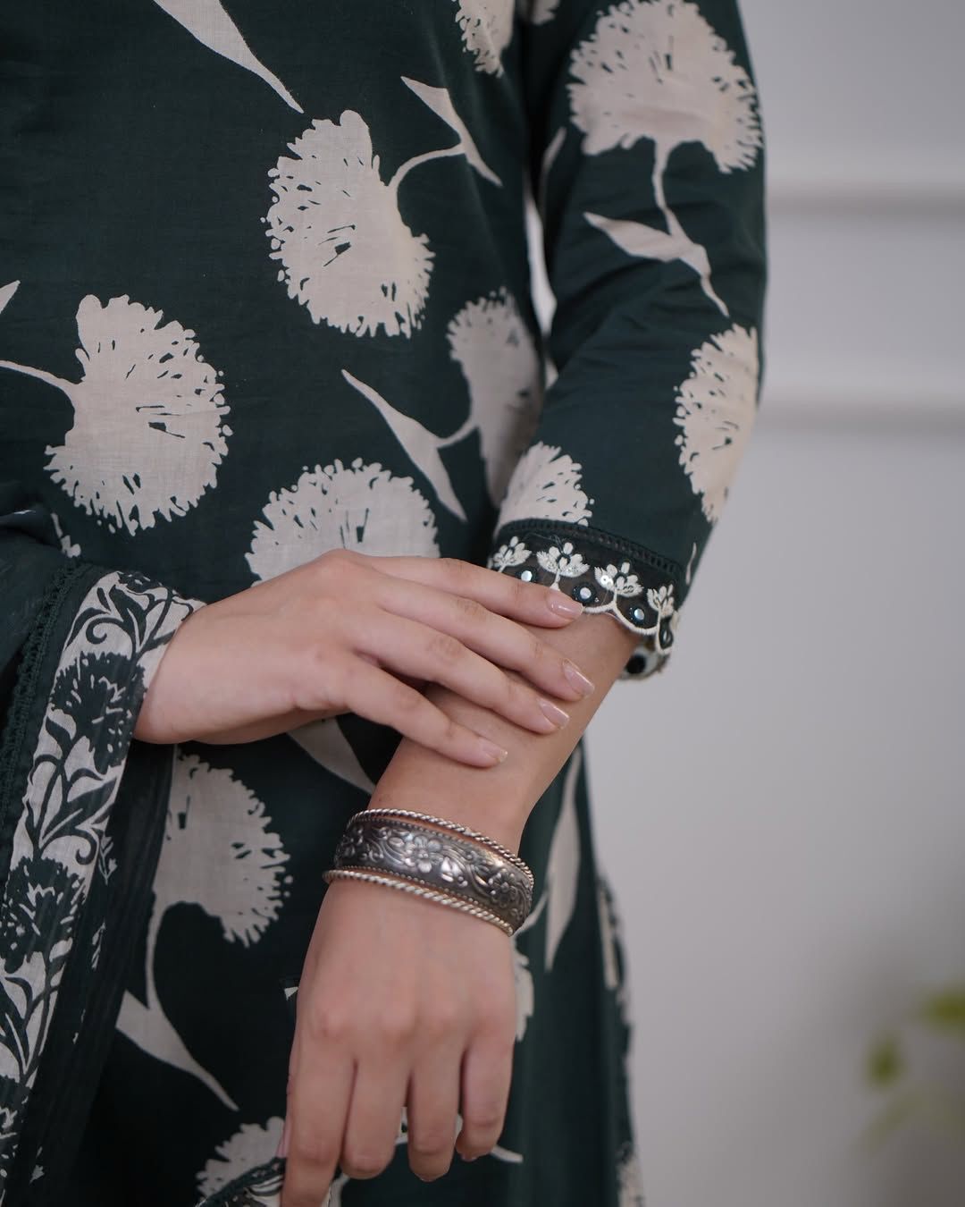 To add an extra touch of elegance, we have included a beautifully aari work on neckline & cotton malmal printed dupatta Upgrade your wardrobe with this stunning ensemble and step out in style!