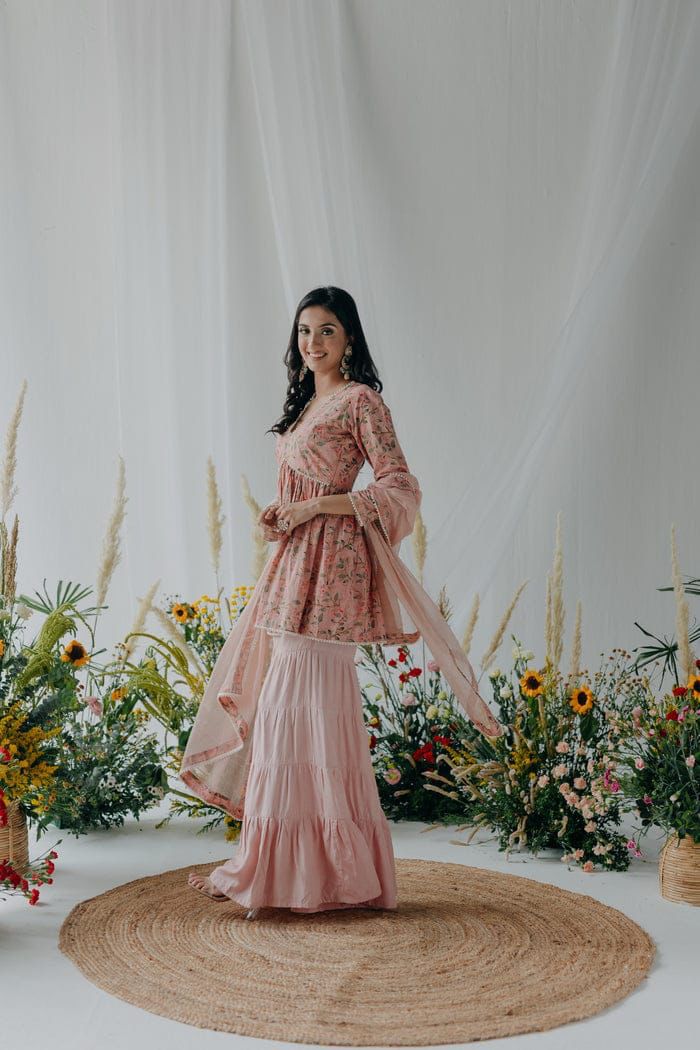 Pink Printed Cotton Kurti, Sharara & Dupatta Set