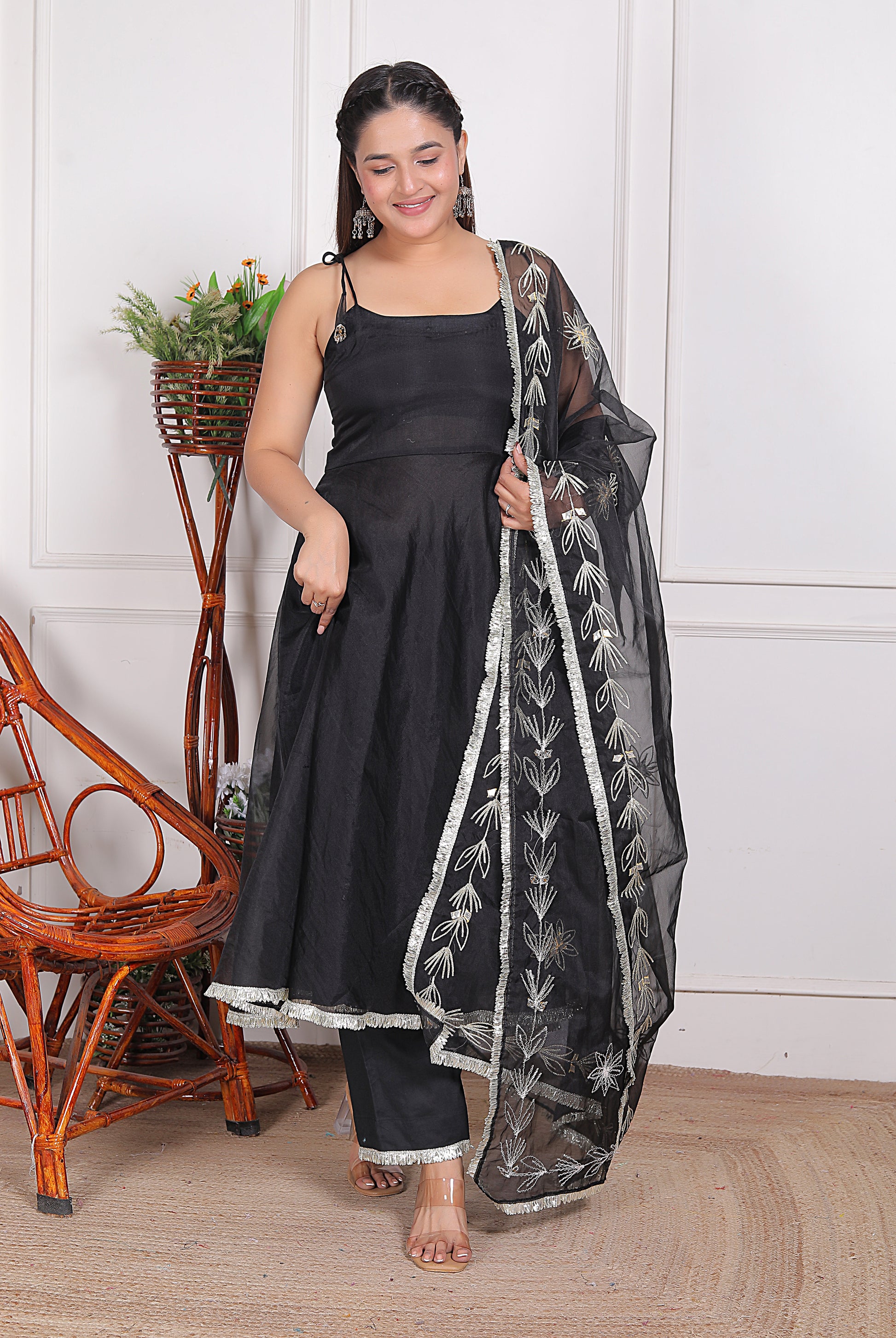 - Style: Slivless Suit Set (Kurta + Pants + Dupatta)